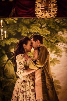 Theatregoers who choose the on-stage seating will have an up-close and personal experience in the transformed Duke of York’s Theatre. The magical atmosphere of the Sam Wanamaker Playhouse will be brought to the West End with scenes lit by candlelight and live Baroque music played by six onstage musicians, led by harpsichordist and Musical Director Robert Howarth.